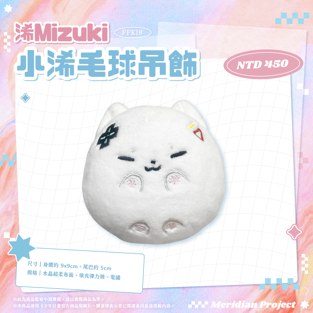 ◆ 《浠Mizuki》小浠毛球吊飾【尺寸】身體約 9x9cm、尾巴約 5cm【規格】水晶超柔布面、填充彈力棉、電繡