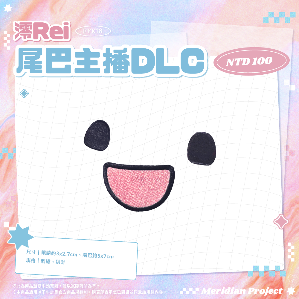 ◆ 《澪Rei》尾巴主播DLC【尺寸】眼睛約 3x2.7cm、嘴巴約 5x7cm【規格】刺繡、別針