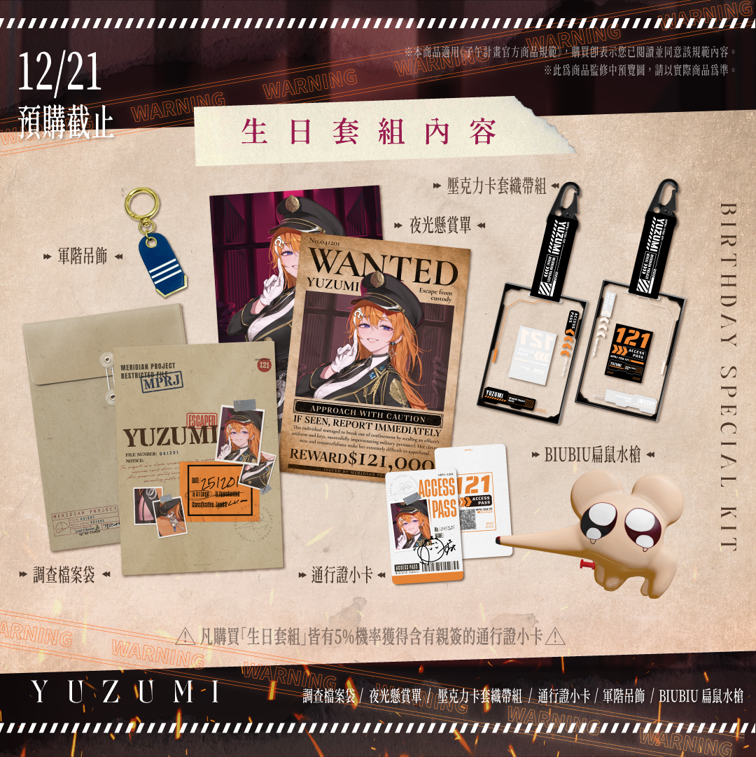 ※凡購買生日周邊套組皆有5%機率獲得含有親簽的通行證